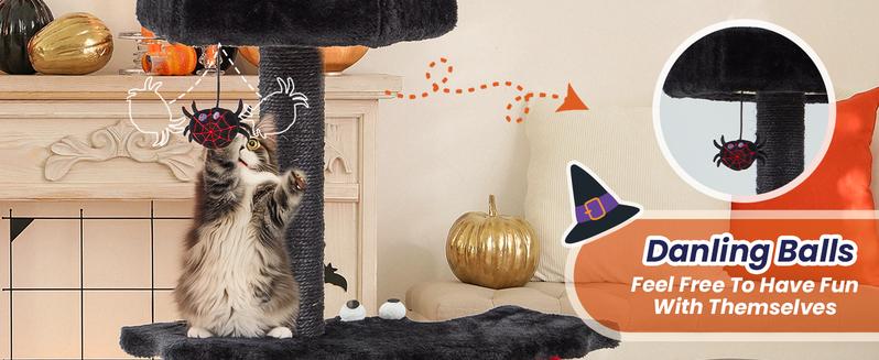 - 【Innovative & Stylish】: Our Cat Tree adds many innovative gothic elements for people interested in Gothic style: the Dark Night Castle is a mixture of red and black, two hanging and spring-type dark cat toys, which provide your pet with a gothic style play space.