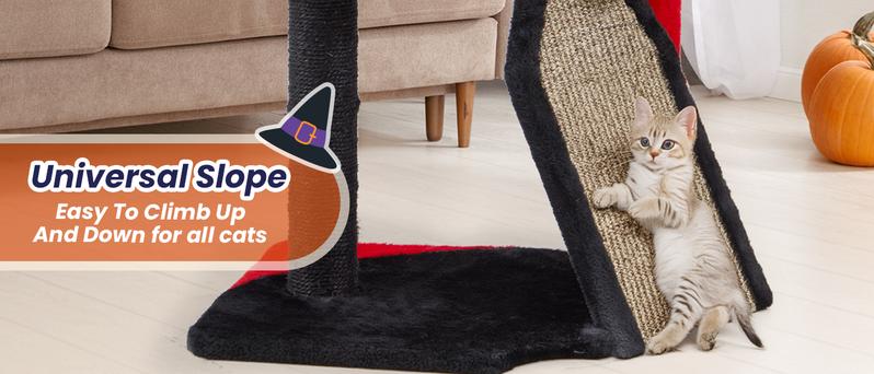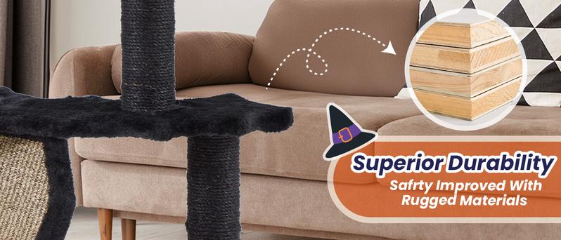 - 【Gothic Style Design】: As a unique Halloween home decoration, this 61” cat furniture attracts cats' attention easily with black and red plush fabric, sisal rope-covered scratching posts, the entire cat tower looks darker and more elegant